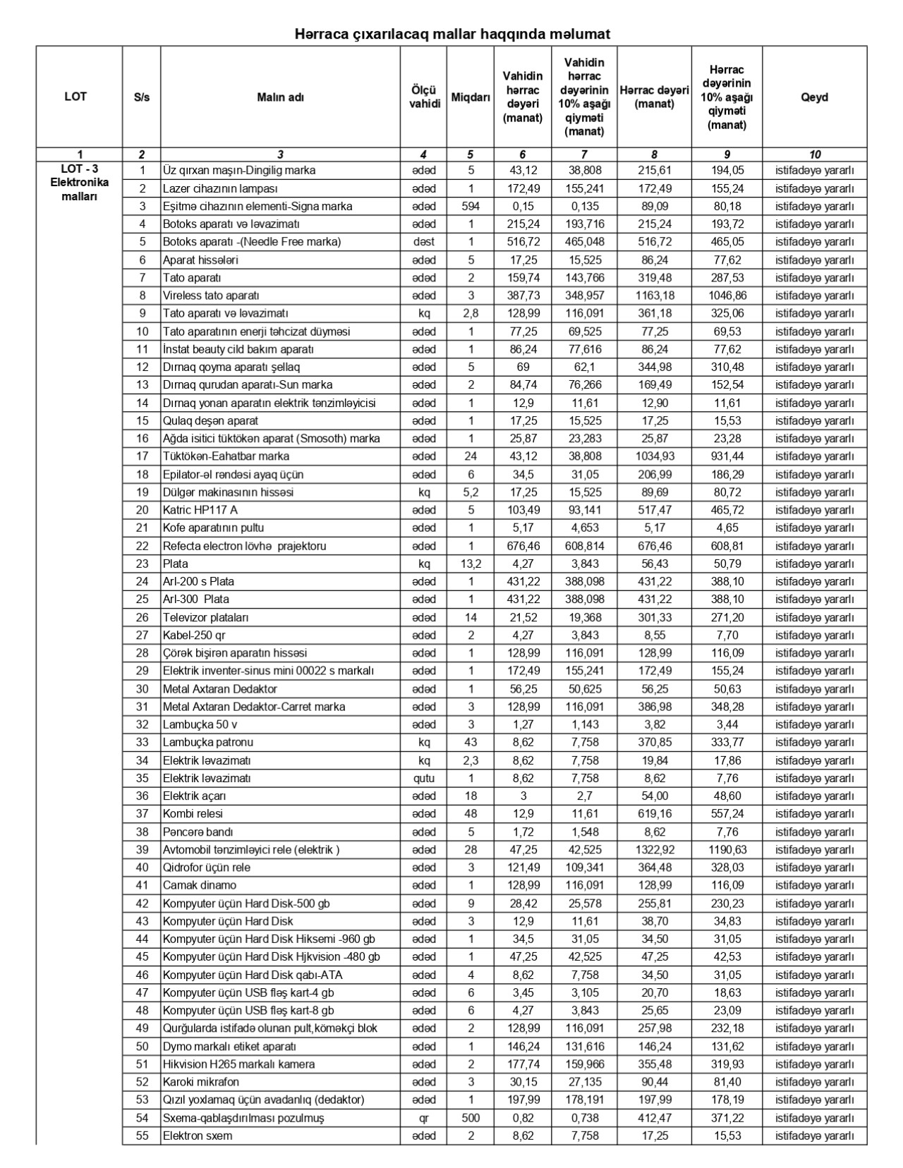 Əmlak üçüncü hərraca çıxarılır və ilkin start qiymətindən 10% aşağı qıymətə təklif olunur.